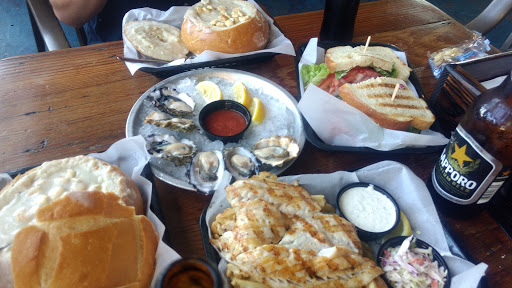 The whole family had a late lunch at Blue Water Seafood on India St. today. It is located in Mission Hills, but I think of it as north of Little Italy. It was very crowded on a Sunday afternoon at 2:00 p.m. speaking well of its word of mouth reputation. It compared very favorably to my long time San Diego seafood favorite, Point Loma Seafoods on the Shelter Island waterfront on Scott and Emerson. I dont know if they were consciously emulating the Point Loma style, but there were many similarities, from the very casual indoor/outdoor/patio dining style, to the display of fish on ice as one enters to order. They offer all of their fresh fish in three styles, Sandwich, Salad or Plate. My wife and I opted for the plates, with our halibut and red snapper, respectively, prepared in a style they called bronzed. It was the most lightly breaded manner I have ever seen fish prepared, and was perfect for keeping the fish moist and flavorful. From the taste, the fish was obviously fresh, as well. In the beer department, they had a small but reasonable variety of bottled beers. But where they excel, is in the full line of Ballast Point brews on tap. Unfortunately, they were out of the Yellowtail Pale Ale, so we opted for a pitcher of Wahoo Wheat. It was perfect with the fish plate. Another way I prefer them over Point Loma is in the salad. They offer a nice mixed garden salad with fresh greens, much better than cole slaw. Also, the jasmine rice is a nice alternative to fries. The youngsters were very please with their fish and chips and clam chowder. I should also mention that they offer a number of chilled shrimp and fish cocktails, ceviches, etc. I have to rate this a bit above Point Loma, a place I have been loyal to since 1984.