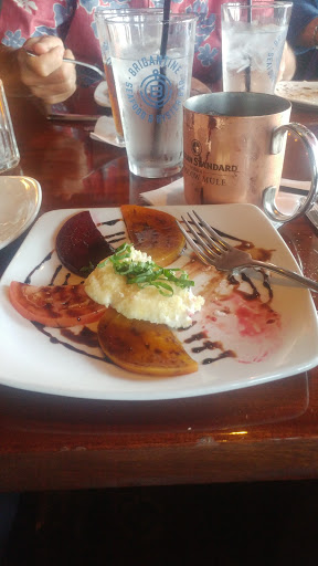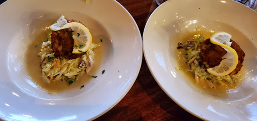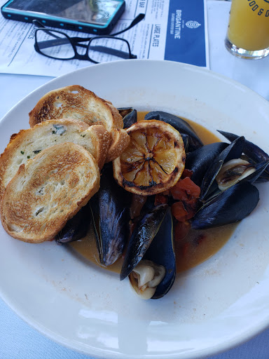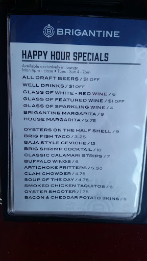 Stayed on the harbor and walked into the Brigantine because of the fresh oysters on the sign. Very unassuming building but we were blown away when we walked up stairs. Very cozy, modern looking dining room. We sat at the bar as we were just looking to have a drink and an appetizer. The staff was great and attentive. She explained all the different oysters they offered (as a Texan I had no idea and learned a lot!) and really made us feel important, even though the room was fairly busy. Modern harbor decorations and a huge fireplace made this a unexpected gem.