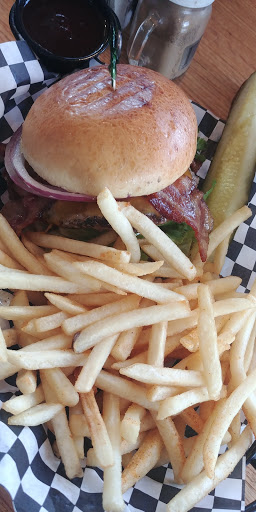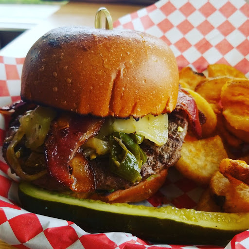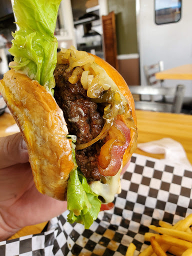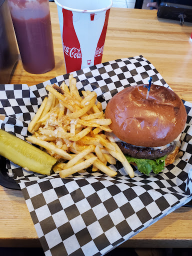 I had high hopes for this place due to the name alone. French fries were so oily I couldnt even eat them. Unfortunately I didnt discover it until I got home. Burger was just so so. Nothing to remember with not much flavor. Plus side is there is a parking lot! Wish I could say more about this place but....I cant. Oh they do have indoor and outdoor seating. Thats nice!