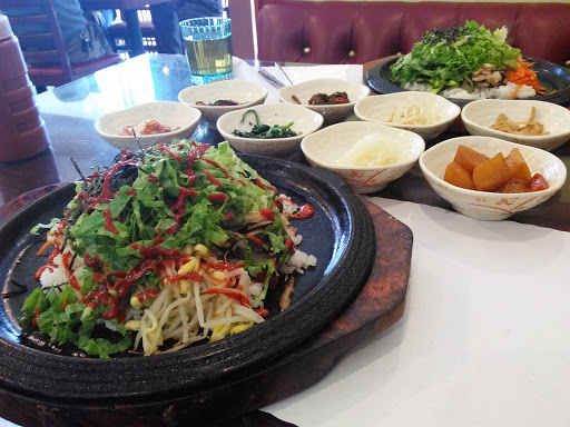 Great authentic Korean food. The stone pot bi bim bap is different than other places. Servers on a flat skillet