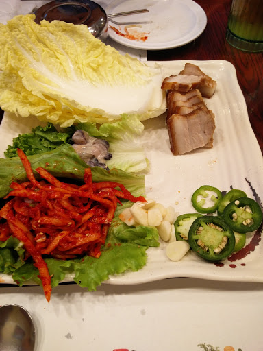 Do not get the bossam or the galbi tang. There was little to no meat in the galbi tang. Bossam pork was dry. We also ordered the kimchi pajeon and it should be called green onion pajeon. Service and the side dishes were alright.