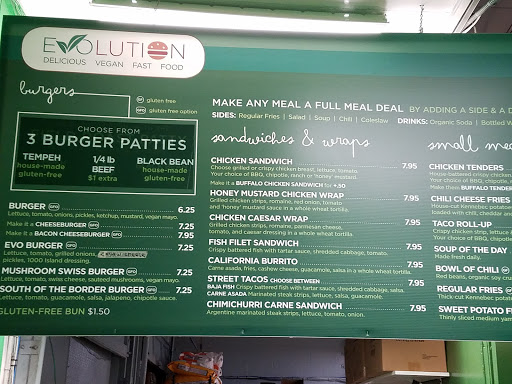 I knew I was out of my element when I overheard a customer discussing "big corp soy" and the life of Krishna with his friend. Im not a vegetarian, nor a vegan. But I wanted to try a new place and ached for something healthy. I walked in a little scared, knowing I didnt belong. The looks. The rasta hair. The beards. It was all new to me. I was sure someone would talk me into a yoga session at any moment. No one did. I went ahead and browsed the menu and ordered the South of the Border burger with a black bean patty. As for a drink, I picked the Magic Elixir. Perhaps not the best choice for my first juice ever. The front of the restaurant looks extremely small, and there is no AC. However, the back patio is huge with plenty of natural breeze. You wonder how youll ever know your food is ready for pick-up since the place seems to be somewhat disconnected. The answer? A PA system. They call your name when your food is ready. The burger was huge and extremely delicious. I love spicy food, and this definitely had a kick thanks to the jalapeños and chipotle sauce. Throughly enjoyed the patty and the guacamole. I dont know what kind of bun they use, but it was really good. As for the Magic Elixir, I wanted to do some magic of my own and make it disappear. No, the restaurant didnt do anything wrong. It was me, and an erroneous decision. I wanted to try one of those natural juices, but this was too strong for a beginner. It contained apple, beet, carrot, cayenne, ginger and lemon. It also comes with garlic, but my cashier must have sensed I was a newbie and asked if I wanted the garlic too. Obviously I said no. I did my best at drinking it, and I somewhat got used to the flavor after a while. Its supposed to help improve your immune system, so I have that organic juice to thank for staying healthy so far. Like most of the reviews mention, Evolution Fast Food can be a bit expensive. I didnt know about the combos, so I ended up paying about $16 for my lunch. You get what you pay for, and what I got was pretty good!