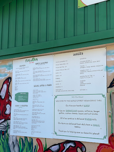 Date of visit: 10/6/2016 Ive had a couple of close friends go veggie (*coughMonicacoughIssac*), which is a good thing for the environment, so Im definitely trying to support when I can (but sometimes you just can beat chicken adobo and rice). Since I never get to see Monica, I wanted to make sure that we were able to eat somewhere unique with a lot of vegetarian options. Thanks to Yelp, I was able to find evolution fast food. Everything offered here is vegetarian, if not vegan, which is awesome. Lemonade. I believe the lemonade is made in house, which really shows. It wasnt too sweet and definitely went well with washing down our meal. If youre thinking about getting the lemonade, Id definitely recommend it. Fries. The fries here taste like fries, which is all I want from fries. They were nice and fresh when we got them, which was nice. Theyre also thicker cut, which I enjoy because I like the middle to be softer. These went well with my burger. South of the Border Burger with Black Bean Patty. This burger was really good. I enjoyed the guacamole and amount of veggies provided with this burger. There are too many burger joints that think meat and cheese is the only way to a good burger, but Evolution definitely gets the balance between their patty right. Im starting to become a bigger fan of beans, so I actually did enjoy the burger, but the one I made at home will still be my favorite (you cant beat homemade most of the time, sorry). Special of the Day - Pesto Mozzarella Burger with Black Bean Patty. Cams not really into vegetables, much less a vegetarian, but he really enjoyed his burger. It helped that there was a lot of cheese included with this burger and the pesto was quite tasty. Again, like my burger, there was a good portion of vegetables, which he also enjoyed. Veggies really help round out a burger and prevent the heaviness of the grilled patty and melted cheese take over the dish. Overall, I will definitely be back to Evolution if Im in the area. Its a little far to drive for a veggie burger, but a great place. We havent experienced the drive thru, but I think its worth it to come in the evening and relax in the patio - its super cute back there!