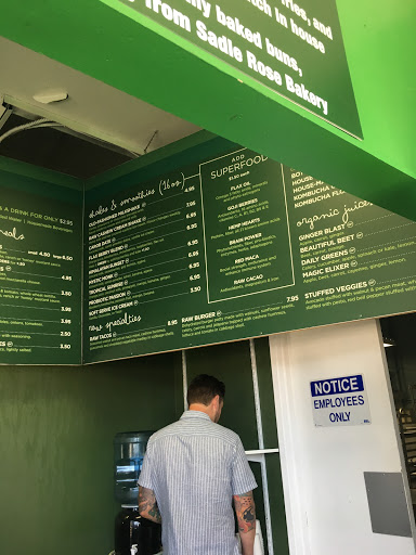 Their website reports that they have bike delivery, and I (being a strict vegan who only eats from veg kitchens) planned my trip to San Diego around that. They don’t have bike delivery. Being the only veg kitchen around I had no option but to walk 2 miles up there even though I really didn’t have the time. Once I got there they totally messed up my order and tried to make it seem like it was my fault. I have to believe that there are some disgruntled workers there because I don’t understand how you can mess up something as simple as 2 veggie burgers add avocado and 2 fries, but they did. I only had one order of fries, and I later discovered that only one of the veggie burgers had avocado even though I was charged for it on both. Also, I asked for it to be packaged well for walking and was given a small soggy brown bag loaded down with the food. I travel rather frequently and this was my worst customer service experience at a veg restaurant. When I told the woman (short dark hair, tells awful “jokes”) about my missing fries she denied me having ordered 2 orders and told me “I’ll have to charge you for those” and that it would take 5 minutes to prepare. I just left without the fries. The food was way overpriced for the size and mediocre at best. Larger vegans will need to spend 15 dollars or more to fill up here.