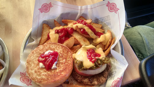 I am a big fan of Fudruckers burgers, but at this location I was left disappointed. I had asked for a medium buffalo burger, my burger was cooked well done. My fathers medium well burger was pinker than mine. Place is tiny and under staffed. Your forced to eat your food with the left overs of previous customers on the table and they frown upon your attempt to clear the table yourself. Avoid this place.