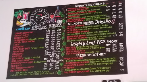 As Grinds and Vine has two coffee-related words in its name, I will only rate my coffee experience. I had a Breve Macchiato (my usual) and also tasted the Lavazza filter coffee. The filter brew tasted quite dull and watered down. I was assured that they use dark roast, which is hopefully the Lavazza Gran Filtro. This is one of the varieties of beans we use at home and I have to say that with my cheap Costco machine I honestly get better results. So knowing that they use decent beans (theyre the most popular brand in Italy for a reason) and have good equipment (I saw it) Im wondering what the issue is. I sincerely doubt that they dont clean the equipment daily or use bad water, so the only things remaining are either the grind or the brewing method/time/proportions. In my opinion, you should be able to make a much tastier beverage from these beans. In my Macchiato I mainly tasted the cream and sugar despite the small quantity of half and half and the single sugar cube. Nothing like the dense, hazelnutty taste of the Lavazza Gran Crema espresso or the caramel tones of the Lavazza Super Crema, both of which I use at home with my Rancilio Silvia Espresso machine + Rancilio grinder. Again, this establishment has far superior equipment and the drink should be at least very good. I have no idea why it isnt but thats a fact. I was told that they also use Birdrock coffees, so I will check back to taste that and determine if Grinds and Vine deserves further attention. In this time of easily obtainable quality, a place like this has no good excuse not to serve excellent coffee.