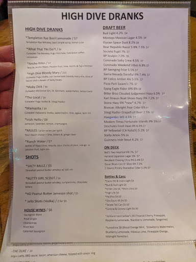 I visited High Dive Grill on a recent visit to San Diego and I really loved it. The staff was friendly, the atmosphere was great and the food delicious! I had The Kraken, a 1lb Angus patty topped with bacon, grilled onions, Gorgonzola and sandwiched between two Sriracha infused PB&J sandwiches, and OMG it was so very delicious! It is a lot of burger so youll probably want to share this with someone if you can. I will definitely go back on my next visit.
