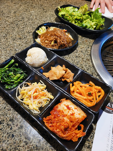 Date of visit: 9/19/2016 Scotty and I came here for dinner at 5:30 on a Monday, so there were barely any other people in the restaurant. As many other reviewers have also stated, this location seems to be much bigger than other KBBQ places - there is a lot of open area and the ventilation is great, so you dont come out smelling like meat, which is definitely a bonus. The waitstaff here was on top of everything - it definitely helped that there werent many people in the restaurant, but it was nice to see that they were extremely efficient, which I can assume means service would be good when busier. They do have these large carts which can get in the way of walking around, but you should probably be seated the entire time. We decided on the A2 all you can eat menu. With tea, tax, and tip, it came out to $30 per person, which wasnt bad for the quality of meats, side dishes, and service. My absolute favorite cut of meat was the marinated thin beef - the meat was still a little thick and perfectly seasoned. However, my least favorite was the bulgogi - it tasted like cheap pieces of beef and was super fatty. We also got the thinly sliced brisket twice, and pork galbi. Both of these were good and definitely cuts I would get again. We ordered the marinated short rib, but were too full to get to it. Since we didnt touch the meat, they took it back, which was nice of them to do since a lot of places would have charged us for that mistake. My favorite side dishes were the glass noodles, potato salad, cold spinach, and kimchi. We skipped the radish and bean sprouts. Our server also kept offering us rice, but we were good with just one bowl. We didnt order any of the other side dishes other than the rice papers for Scotty. Overall, this is definitely my new favorite place for KBBQ. However, I would definitely recommend going with a group of at least 4 people so you can get through more dishes without being ridiculously full. I was shocked that Scotty and I got through 5 selections (but barely).