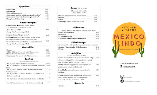 El Sol Mexican Restaurant is an outstanding cafe in the North Park area. Chef "Nacho" takes great pride in making his customers some of the most delicious food available anywhere in San Diego. My Wife loves the Chile Colorado Burrito, while I enjoy the Double Cheese Burger and the Shrimp Quesadilla. Nacho always supplies everything that a diner might want in the "Takeout Bag" including condiments, napkin and plastic dinnerware. The serving staff is very prompt, attentive and courteous. The restaurant is easy to get to at 2037 University Avenue, but the parking is a little difficult. Menu prices are VERY reasonable; $5-$10 each.