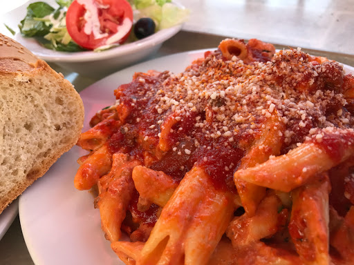 Think 1950s Italian-American family restaurant with red everywhere and old black and white family pictures and youll get the atmosphere of the restaurant. Also linked to a packed-to-the-brim alimentary style grocer and purveyor of all things Italian. My elder relatives LOVED this place. The food was quite good, though youll not find any surprises here. Huge portions, so split an entree if youre not big eaters. Loved the cheesy garlic bread appetizer with a side of tomato sauce. Hubby was a big fan of the Lasagna with meat sauce and took the leftovers back to the hotel for later. Also the traditional Linguine Vongole (clams) in garlic butter sauce was great. Parking can be problematic on the street. The main lot was full, but we managed to snag a spot at the overflow parking next door.