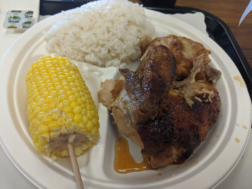 I have mixed feelings... the food was pretty plain but there was a lot of it. After dousing the chicken with sauce, and likewise the mound of plain rice, it was a decent meal. The teriyaki combo was skinless and cooked fine, but gave no hint of a rotisserie bird.