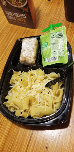 Why am I giving a chain restaurant 5 stars? The people that work here. Every time I go to this noodles and co I have a wow experience which is saying something because I am kind of a cynic. I went yesterday after printing out my free noodle bowl coupon and presented it with my drivers license- which has a different last name. I felt like this was going to be an issue and I was defensive because I reeeeaaalllly wanted those carbs. "Its my birthday." [shoves coupon at server with prepared speech ready] "Congrats?" Says the obviously confused server. He may have detected I was Hangry (hunger anger) at this point so he tosses a rice krispy treat at me. I tried to show him my ID but he believed me. So I scored a rice krispy treat on top of my already generous noodle bowl. Which tasted terrific, in case you were wondering. These people are so nice. I really love coming to this location for great food and great service. Theyve got free wifi and amble parking. All in all a great place to carb load.