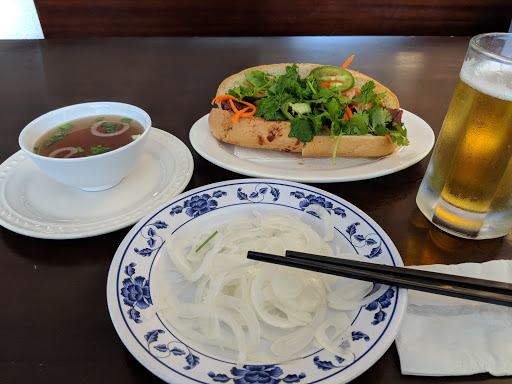 You really cant go wrong with Pho. I make pho at home and although this pho place doesnt taste like homemade pho...its close enough. We came here during lunch today and it was packed and busy. You can hear the staffs always talking and greeting customers. With all the noise going on, you do feel rushed to order and eat but feel free to take your time. Food came fast. I ordered a #1 and #7 for the husband. My son had the pork fried rice. Everything came out fast and was decent. Pork fried rice was just that. It was a bit on the bland side but added a little soy sauce and suddenly it had more flavor. As for the pho, broth wasnt as rich but it was clean and refreshing. Its not fatty or overpowered with sodium. I wish I could taste more of the spices, but, like I said, it was decent. Condiments only consist of bean sprouts, Thai basil, limes, and jalapeno peppers along with hoisin sauce, srirach, and a garlic chili paste. At home, we have more condiments, but, like I said, this place is decent. Its great for a quick grab of pho if you dont feel like making it yourself. They do have to-go containers. For the price, its pretty good. There are other items on their menu too.