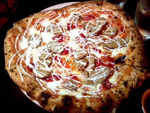 Good traditional Napolitano style pizza - hand-stretched, not rolled. Brunos have a beautiful high temperature (900 F!) oven and pizzas are cooked very fast with slightly burned crust and bubbly texture. For me the rim remains a bit too doughy, but altogether a tasty pie. I am not sure where they get their mozzarella but it tastes great with the soft, velvety feel of the fior di latte Southern Italy tradition. The house burrata served with ripe tomatoes (pomodori) is a must! The restaurant has a Thursday night special, when the Margheritas are $10 a pop. Good choice of beers and some Italian wines as well. One of the hoods favorites.