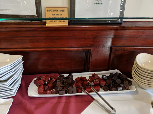 We arrived at Rei Do Gado for their dinner service. This place was an Amazing all you can eat Heaven. It was a quaint spacious place that was quite a shock. From the outside it doesnt look like much especially with the riffraff outside. But once you get inside you enter a whole different world! . As we were seated we noticed a huge white piano in the corner by the window along with perfect lighting for a romantic setting. The art on the walls were traditional family pictures that set a comfortable setting. The server Caseo came over and explained how "it works". There is a salt shaker sized wooden piece on the table one end was green and the other end red. When you would like to have the waiter bring meat, you keep the green end up. When you do not want them to stop, you put up the red end. The salad bar was amazing with lots of seafood varieties such as King Crab legs, Huge Shrimp, Muscles, Oyster salad and Fresh Smoked Salmon. Anyone say cheese? There were many cheese options such as fresh Bleu Cheese, Brie, Feta with many more selections that I do not know the names of but were completely YUMMY... types of soups and salad selections which I didnt try as I was overwhelmed with my favorites such as huge Artichoke hearts, sautéed mushrooms, Marinated beets, fried bananas and so many more options that I can not even remember! Did I mention this was ALL YOU CAN EAT? The service was impeccable! From the main waiter to the meat server and the water server never left my glass get to half full. This service and food was amazing and I would recommend this to anyone who asked. I am a True Fan of Rei Do Gado Brazilian Steak House! Thank you for such an awesome experience. Especially the touch of singing Happy Birthday in Portuguese while delivering the best Tiramisu I have ever had as well as the ending of the perfect evening of my espresso. The Brazilian Beer Xindu was also just perfect! Meat Selections: Pichaha: Top Sirloin cap Pichaha No Alho: Top Sirloin in garlic Filet Mignon: Wrapped in bacon & Prime tenderloin Maminha: Tri Tip Fraldinha: Skirt steak Costela De Boi: Beef ribs Costelinha de porco: Baby back ribs Linguica: Pork Sausage Coxa de Frango: Chicken drumsticks Lombo: Pork Loin Per Com Bacon: Turkey wrapped bacon Presunto E Abacaxi: Ham with pineapple Coracao De Galinha: Chicken hearts Pernil de Ovelha: Lamb Leg Coxao: Top Round Cupim: Hump of Brahma bull Alcatra: Whole sirloin