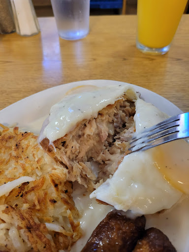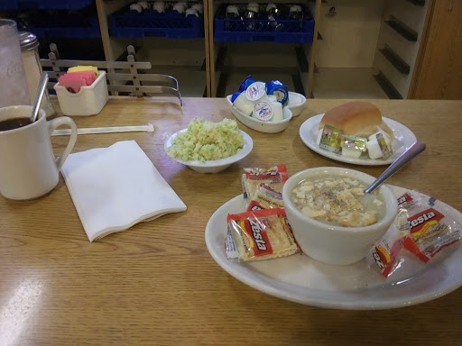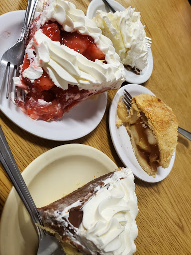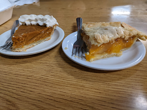 Ive been coming here since I was a child. Its a clean, open restaurant with simple diner food for cheap. I always get the Chicken Pie Dinner: one chicken pot pie (chicken and gravy and nothing else), mashed potatoes, coleslaw, veggies, a dinner roll, and desert (pie or ice cream). All for less than $10. Servers are always polite and attentive. The chicken pot pies are nothing less than amazing, but Rd clear to me that the mashed potatoes are from a box and the pie fillings are from a can. Still worth the trip, especially if you dont have a lot of money or have a lot of people to feed.