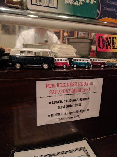 | Working: | 11:30AM–3PM 11:30AM–3PM 11:30AM–3PM 11:30AM–3PM 11:30AM–3PM 4–10PM Closed |