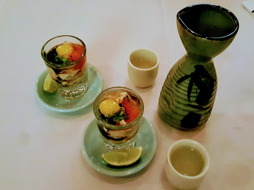 Have to say that the Sushi here was good but not great. We had two cut rolls that had good flavor but werent well packed, sushi rice was a little wet and didnt hold together. Also a little heavy on vegetables and not enough fish in my opinion. The Sashimi here was hit & miss. We had really excellent Salmon but were less than impressed with the Spanish Makerel. Cold sake was served just above room temperature, not truly chilled. Service was good, lovely non intimidating atmosphere. We may give this place a second chance sometime but its one of those sushi places where you kind of need to know what they are good at and what is fresh. Did get crowded by the time we left, a good indication that folks in the area like it. If you try it out I would definitely sit at the sushi bar so you can see someone order a live shrimp!