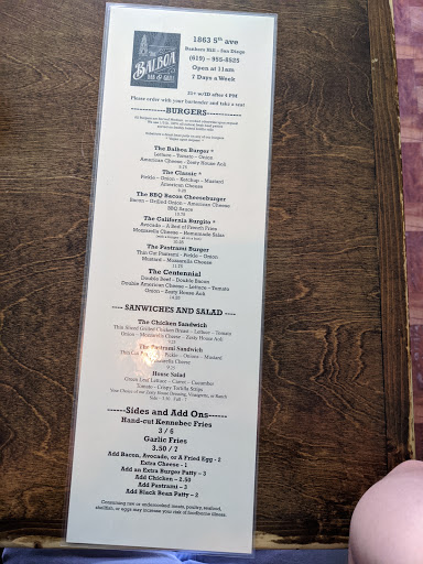 BEST burger in town. Ive had burgers from Slaters 50/50, Smash, Rockys in P.B. The Balboa Bar abbr Grill burgers are THE BEST in San Diego, dont take my word for it, check them out yourself! They also have Craft Beers from several local Brewerys!
