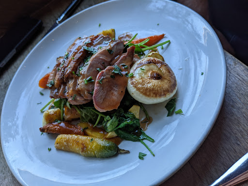 I was told if i had never been here, i had to try their burger. upon ordering (and my friends entree choice of, i want to say a lamb pasta dish but their online menu isnt reflecting that) we faced with the bearer of bad news expression of the bartenders face that both were sold out...the burger just until more meat arrived. but then mid sentence her eyes floated past us that i was in luck, it just came in. Man, talk about an ordering drama roller coaster all in a matter of minutes! sadly my friend had no choice be to pick a sub, and opted for the salmon special of the day. they had a pot pie special that had sold out too. i guess get here early for the hot items?! My only gripe with my meal is i ordered my burger medium...i asked (as i always do) if it would be cooked a true medium with some pink in the middle. if im assured, i will go with it. but it was overcooked and that always annoys me. im just gonna start ordering medium rare everywhere, i give up! the burger was still delicious, i just expect directions to be followed... aAnd those duck fat truffle fries, ooooh goodness. those are so good friends. if you arent getting with your meal, you should get a side of them for sure. I got to sample my friend salmon and puree and they were delicious. we both ordered the Hess orange honey wheat that was on tap and that is some refreshing loveliness. i could drink that all day.