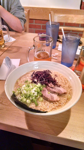 PROs: This is my FAVORITE place to go get ramen. At one point, I made a stop here at least once a week! I get the spicy Nagoya ramen. The nagoya ramen comes with stir fried mince pork, chives, & spicy bamboo shoots. Its spicy, salty, and savory so the flavors compliment each other very well. The noodles are fresh and chewy. Its all about the NAGOYA RAMEN! I also order a variety of Yakitori. I personally like the chicken heart with green onions, beef tongue and bacon wrapped asparagus. Keep in mind that you can order the yakitori after 5 p.m for dinner. CONS: 1 star off because service can be slow during lunch and dinner hours. And also expect a 20-30 minute wait on weekends considering how small the place is. TIP: You can mix and match the broth and toppings on the menu. (i.e - you can order the nagoya broth with shio toppings which usually comes with BBQ pork, bamboo shoots, green onion, corn & soft boiled egg.)