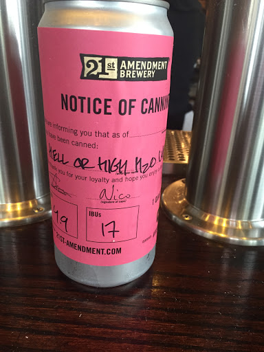 I have pretty endless love for 21st Amendment. Great beers - locally made, varying from light to dark. Some of my favorites are the Brew Free or Die, Back in Black, and Bitter American. Decent food - not the best youve ever had, but pretty good for pub food, and reliable if nothing else. Full bar - when beer isnt good enough. Beer garden - for the three days a year SF is sunny. Friendly service, fun happy hours, awesome open space, clever name. This might be my favorite SF brewery. I definitely recommend stopping in. *UPDATE: no longer full bar. Sad face.