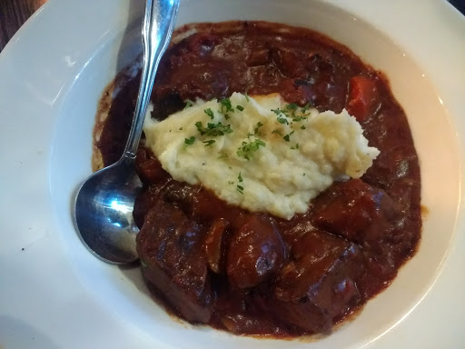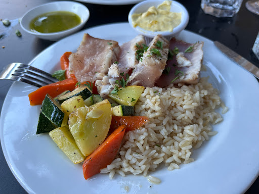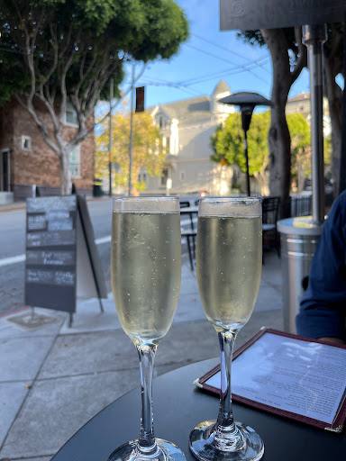 After a long dreary rainy day walking mostly uphill to find the Painted Ladies (huge disappointment) we were hungry. Not in any mood to walk much further, we found this place less than 2 blocks away. What a wonderful experience, food was excellent. My wife had the salmon platter and I the spinach pear salad. Phenomenal. The shrimp risotto was fantastic and the steak ( yeah, I know) I had was super. Wine and beer served. Well priced.