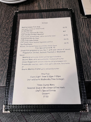 Sorry (but the chef is still terrific)... We had an unfortunate evening though. The staff was inept. Trying to fix a wobbling table for the people near by and couldnt, the people got so frustrated they left. Then the host put a stack of napkins under it and it still wobbled badly...he just left it like that for the next people. The waitress was clueless about the menu. Food was good except the bouillabaisse was so "nouvelle" it should have been an appetizer. I dont know what they were thinking; two people had it and both left hungry, be forewarned. (We had to ask for bread.) They did comp us the price of one, and for the salad that had a hair in it, but it doesnt really make up for an evening we hoped to enjoy with friends. They need to keep the chef and find new staff! We probably wont be going back...too bad, it used to be nice.