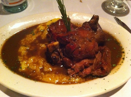 3.5 Stars, rounded up to 4 stars. The food was good, but not incredible. I ordered the rabbit, which was surprisingly not very "gamey". Instead, it tasted very close to duck. The only problem was that the sweet-citrus sauce became a bit too acidic toward the end and I could not finish the meal. 4 stars I also noticed everyone raving about the streudel ice cream. I ordered it but wasnt a huge fan of the raisins. I prefer salty-sweet desserts or at least savory-sweet but I felt it was too sweet. This may have been because I had just finished the rabbit and the sweet aftertaste was overwhelming. 3 stars My husband had the Penne a la "arrabbiata". It was a very simple dish, nothing fancy. The portions were definitely hearty, but it tasted like pasta you could get anywhere, although I did like the tomatoes used in the marinara. 3 stars. For appetizers we ordered the mushroom soup, pear with gorgonzola cheese, and truffle salad. I liked the mushroom soup a lot, even though I dont like mushrooms. The pear is drizzled in sweet sauce and paired with a sharp blue cheese, and I enjoyed that immensely. Truffle salad was a bit over-truffle sauced, if thats a word. Was hoping to find somewhere identical to what we had in Tuscany. I wish we had ordered differently and maybe I would have enjoyed it more.