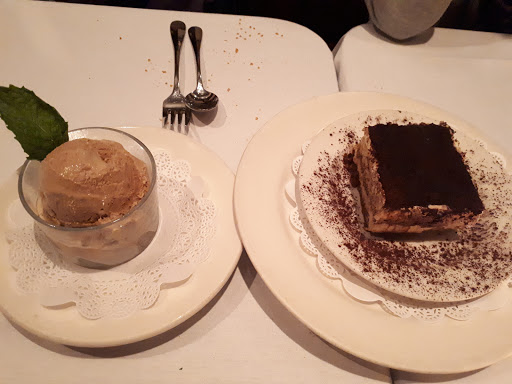 I had the mussels, garnished with marinara sauce and basil chiffonade. The mussels were perfectly cooked and the basil had the soft intensity of peak freshness. Then the braised rabbit. Generous portion of tender meat in a sweet and savory sauce. The tiramisu was just OK, a bit runny for my taste. The service was good. Its a small, quiet place with white tablecloths; the atmosphere is very suitable for conversing with your companions.