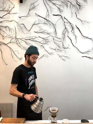 Great alternative to the crowded Lawton location. Front window opens on sunnier/warmer days and makes the shop open air. Dog friendly (outside). You wouldnt have enough space to bring the dog inside anyway