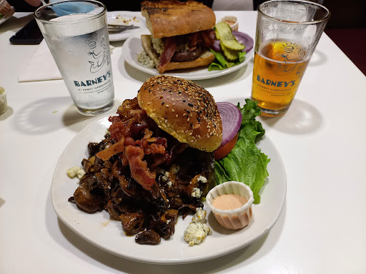 This is one of those "we give you the ingredients, you pick your burger" places, like The Corner in Santa Monica. But The Corner is better. At The Corner, you are your own worst enemy - theyll give you odd an interesting items and you can make great food or ok food. At Barneys, nothing is interesting. The best your mind can conjure is a decent burger with additions that will leave you crawling to your Lipitor. Id rather they lead me to the 3 good burgers and stop there. At Barneys, freedom just looks like too many choices, as the old saying goes. Oh, and the decor, service, at atmosphere sucked when we went there. Probably a lot better on a good summer day when you can sit outside.