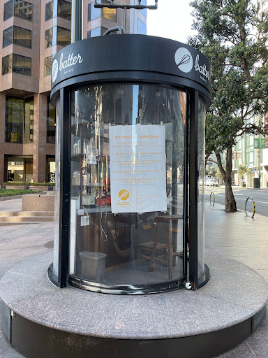 Many of the yummy Batter Bakery treats in a cute little kiosk on the slope of a steep hill right in Downtown San Francisco! Get there early since they do run out of the more tasty treats. But a great reward for hiking up California after or before lunch! Favorites are the cupcakes and pound cake style breads.