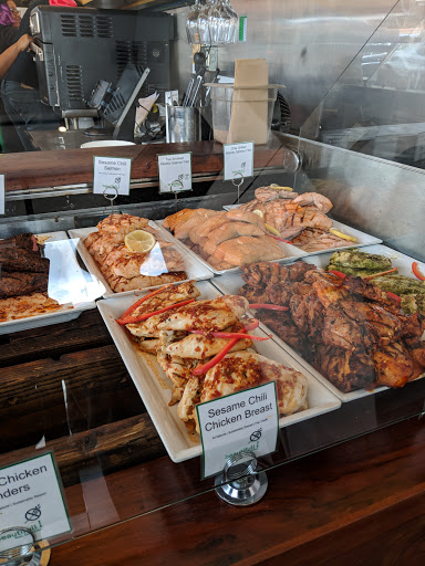 When Im in the area, I usually get the same thing -- tea roasted salmon and 2 sides. Pricey, but fresh and organic. The layout is narrow and cramped.