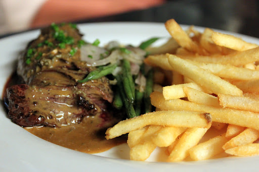 Every part of out meal was delightful. The filet was absolutely amazing the first time I came here (probably because it had foie gras before the ban), but it wasnt that great the second time (it was a weird cut). The New York steak is out of this world though, and the fries that come with are delish. I also got the scallop risotto one time and the scallops were cooked perfectly and the risotto was a delicious compliment. The servers range between chill and snarky and really add to the overall vibe. Its a classy french restaurant without the pretense. I cant wait to come back.