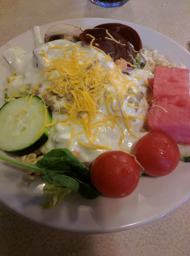 The first time we stumbled across Bullshead, we were sitting in the waiting area for a few minutes awaiting our name to be called when I decided to whip out my phone and check the health score. The less-than-favorable score popped up on my screen, and I suggested we bolt out of there just as the hostess yelled "Shawn, 2? Shawn, 2???" We took our chances. I was actually happy to find this place because I love buffalo burgers, and buffalo burgers seems to be their specialty. And they cook them just right. Theres a small, but adequate salad bar thats often out of an item or two, but it does the job. Weve been back a few more times and seem to gravitate into Bullshead whenever were in the West Portal area. The health score seems to be heading up a bit, so lets hope they can get a bit closer to the 100 side of the scale.