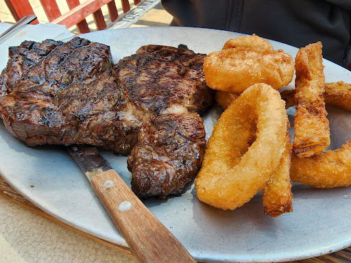 We had a hankering for a steak. The reviews were ok for this place and we knew going in the atmosphere was going to be poor but wow it is like walking in to a coffee shop. We almost left based on that but then we saw the steaks they had displayed in their fridge. The steak was cooked quite well but there was absolutely no seasoning on it what so ever. Their onion rings were really good but my dining experience was worth about half of what they charged so they are off of my list.