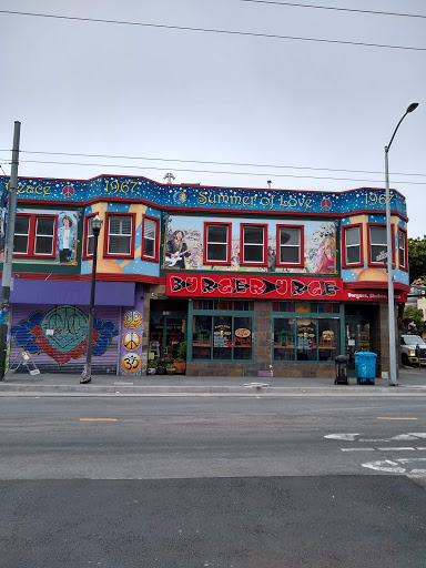 Funky and casual burger joint in the Haight neighborhood. Prices are somewhat reasonable for an independent hipster type of hamburger and sandwich shop. Food was average, service was somewhat moody but efficient. Beggars, thugs and loud shady people arguing and loitering outside and everywhere on Haight Street kept us inside longer than we would have liked. It was a useful hideout for that reason, but nothing memorable about it really besides that.