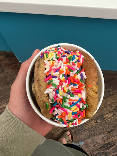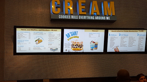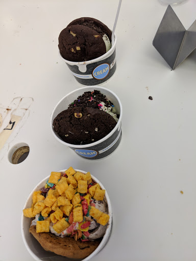 Cream is everything its suppose to be. Across from the Roxy and minutes from any bar in the Mission District, The fun is churning before you even walk in, from the logo and decor, to the slogan "cookies rule everything around me." And the best part: IT DOESNT CLOSE TILL MIDNIGHT! . Its a perfect stop, when walking from an evening dinner or strolling the San Fran, with an array of flavors to satisfy any sweet tooth. Fresh Baked cookies, various toppings, and a welcoming assortment of ice cream flavors makes the combination options almost endless. And the best part is its priced so cheap you think you are getting away with something. I went with a simple combo of salted caramel ice cream on top of a warm, chocolate chip cookie. It was great. The only thing that keeps this from getting 5 stars is mainly the employee working. It was Taco Tuesday, with a sign promoting a waffle cone, taco shell layered with ice cream and oreos. But when my partner asked about it, the girl cut him off and with no tone inflection or small explaination, said "we dont have taco shells" Customer service is important to me, but this girls lazy attitude and lack of customer satisfaction couldnt ruin my ice cream sandwich.