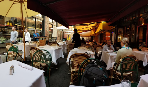 Bought the Groupon deal ($39) 3-course dinner for two. Belden Place is a very cute street, it makes you feel like youre on the backdrop of a Broadway show. We ordered the french onion soup, mussels, boeuf bourguignon, and the triple choco cake and rasberry mousse cake. The french onion soup was under-seasoned -- generally they tend to be very salty, but this one was towards the bland end. The mussels and fries were standard My favorite was the boeuf bouguignon -- the broth was tasty, and beef super tender. Dessert was average. Service - excellent - 4 stars Overall, cute area to take tourists if you have friends in town.