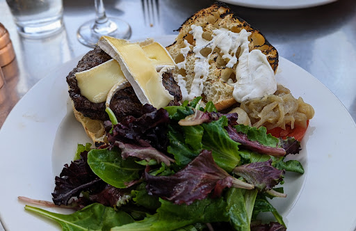 This super cute hole-in-the-wall french diner was exactly what I wanted when I was famished and craving burgers and honestly the burger was the most average part of the meal. We started with the French onion soup which was to die for (a little salty but I love me some salt!). Next we moved on to the beef tartare which was pretty good but it had a bit too much mustard for me, but since it says mustard on the menu, jokes on me. Next we split a burger (the standard one) and fries. It was cooked well, but just an average burger, honestly. Finally we had the garlic, lemon, wine muscles (i think that was the broth) which were excellent! I topped off a meal with their Cab-Franc which was a perfect compliment. Its a nice touch when a wine menu has only one of each type of wine and its actually good, instead of forcing you to wade through a list of junk they got paid to promote. The way the lively and energetic french owner was dumping the wine into the glass (yes, dumping) was so awesome and I felt the urge to high five him every time. Either way, this place embodies that hole-in-the-wall vibe and the owner brings a lot of energy and personality to the experience. Its a bit pricey, but considering all we ordered Id say it was about right. Cant wait to come back.