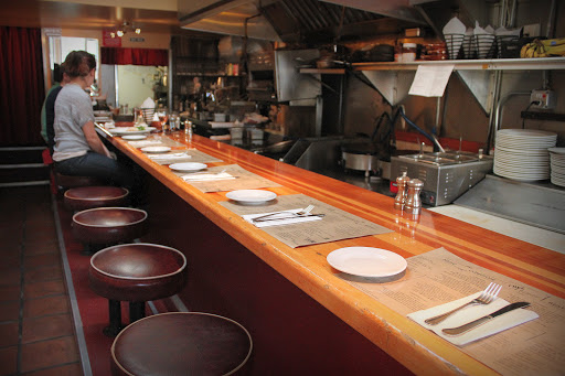 I love their burgers because the beef patties are tender, juicy, and herby. All burgers come on a ciabatta roll, which are crusty on the outside and soft and porous inside. Be sure to add an extra or two because they offer goat cheese, Brie, and Roquefort. I know that practically everyone complains about how small this restaurant is, but the wait is worth it to sit at the well-lit counter and watch the chefs flips burgers. However during my last visit, it was the pork chop with brussel sprouts and apple cider mustard sauce that caught my eye. The pork chop was flecked with fine herbs and prepared perfectly. It sat on a bed on boiled and then grilled brussel sprouts in a saucy bath of apple cider mustard sauce. My only complaint is about the brussel sprouts because they were a touch too mushy for my liking. Overall it was a great meal.