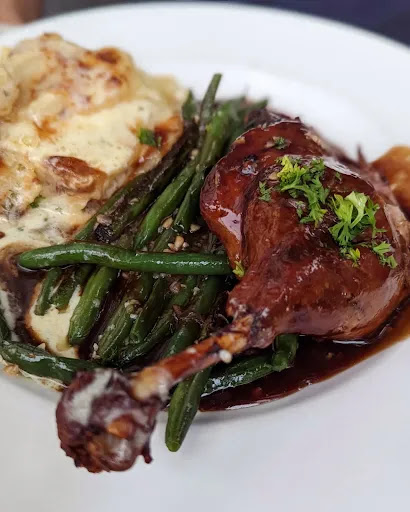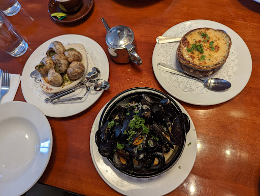 Its a bit of Paris in the Potrero area The French Onion Soup was beefy broth smothered with Baked Gruyere cheese The Escargot were over cooked and uneatable but when I indicated this ...to the waiter... He quickly got rid of the nasty plate and brought me the most delish plate of Escargots ever The main course ... Flat Iron Steak with Peppercorn Sauce Cooked to perfection Reminded me of being back in Paris Absolutely Delicious Im mouthwatering as I write this up. Dessert was bypast ... for a cup of coffee to end our night. Inolvidable Superb The Table Service was on point . The Escargots on the bill was .... Compt Free .. He ushered another apology for their indiscretions of those horrid escargots. Pourquoi senvoler à Paris? Quand un délicieux dîner français peut être situé ici à San Francisco.