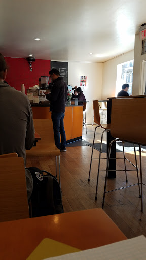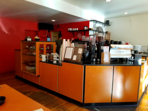 This coffee shop is a short walk from the Nob Hill Hotel where we were staying for a few days.The lattes we ordered on our first visit were quite well made by Brett the barista and tasted very nice.The shop has wi-fi, very long bar height community tables,plenty of power outlets,some trendy art for sale on the walls ,a clean his/hers bathroom and some outdoor seating.I came by here every morning for a latte or cappuccino and every time irritating country & western music was being played.The male staff we encountered are a drull lot and couldnt crack a smile if their life depended on it.I usually didnt stick around long as I didnt like the nerdish vibe.There is a bare minimum of food for sale and they know how to make nice coffees..thats it.We had breakfast most mornings at Mymy cafe right next door...the food there is excellent.