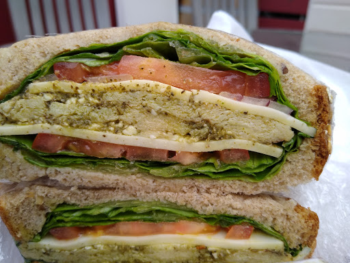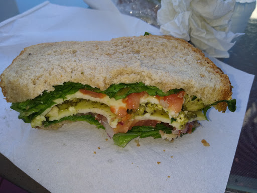 Good vibe inexpensive (for the city) Had a chicken pesto sandwich and latte
