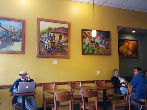 Great service, friendly staff who serve with a smile. Take credit w/ $5 minimum purchase. I had a latte and a hummus bagel with veggies. All totaled ~$9.50. Coffee is great quality, and they have decent snacks, beverages, pastries, and sandwiches. Excellent Latin music and Free WiFi...good connection. Not a lot of outlets to plug into though, and it gets pretty noisy when they grind beans. Buses run up and down the street; street parking is metered unless you find a space a couple blocks up the hill.