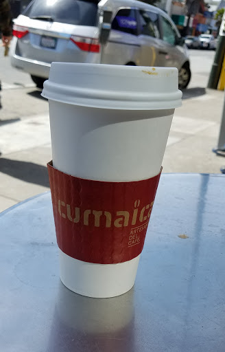 Ive been coming here since it first opened up as a Martha & Brothers Coffee shop. The coffee is absolutely excellent! I usually just get coffee, and it definitely gives your Starbucks, Peets, and etc. a run for their money straight coffee wise. It has a nice strength that I personally always appreciate and enjoy. They have an incredible menu and a great selection of sandwiches, salads, pastries, bagels, and other drinks that look really good! I do look forward to trying more of their selections, because theres such a variety of them and they all look great. One thing I can attest to besides the coffee is the Maté Latté! Hot or iced, it is just absolutely delicious! Ive never seen it or had it anywhere else but here and I do suggest people try it. Maté has a very distinctively delicious taste, especially as a latté. It is hands down my second favorite beverage from Cumaica besides the coffee itself. The location itself is really great. They have a nice spacious layout, they have the tall counter seating facing the street and on warm days they even open them up for the breeze to flow through. Id have to say those are my favorite seats, you can just people watch and just zone out from the hustle and bustle of Mission Street. They have an absolutely lovely back yard area with seating and everything if you want to be outside but not look onto the street. Great place to stop by for a coffee or lunch. One of my top favorite coffee shops in the City, hands down.