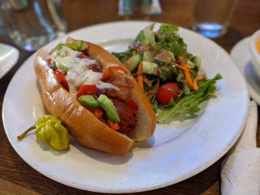 Very relaxed. Excellent hot dog. Got the spiced pork World Series dog. Wife got a chili cheese dog. Was really empty on a Sunday night. Perfect quiet eatery. Good beer too.