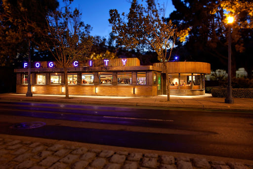 For a diner its expensive, but this is no ordinary diner. Fog City goes upscale with usual dining fare: onion rings, fries, burgers, salads. It also offers some fancy classic SF food like lamb chops, steak, roast chicken, curry mussels, and multiple types of seafood. The menu is sizeable and offers something for everyone making it an almost perfect place for larger groups. The waitstaff was pretty good too. Even though our chicken was messed up by the kitchen (it was a new dish) they brought us complimentary onion rings and apologized profusely. Dessert was great too with an upscale root beer float and some excellent bread pudding. A fun place to go and it reminded me of the scene from "So I Married An Axe Murderer."