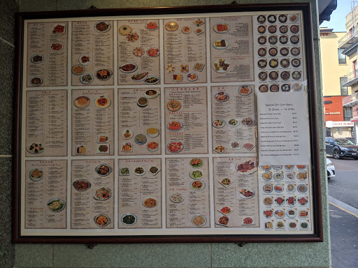 My family had the dim sum for lunch during the week. Pricey at nearly $5 per ordered dim sum dish, when compared to prices in SoCal. But we figured wed have to eat in Chinatown at least once while visiting SF. What was good: Turnip cake, soy sauce chicken (tender), fried shrimp dumplings. Not good: Combo fried rice (really greasy), chicken feet (tastes better in SoCal). Ambience of restaurant is nice, we ate downstairs, and bathrooms clean. But they would not validate our parking even though we spent $60 on our meal. Waiter said they validate if you spend $80. Whatever. Plus, I would have given higher marks if I did not have GI issues later in the afternoon. Granted my stomach is more sensitive than my wife and son, but good tasting food should also be clean. Maybe too much grease from the fried rice?